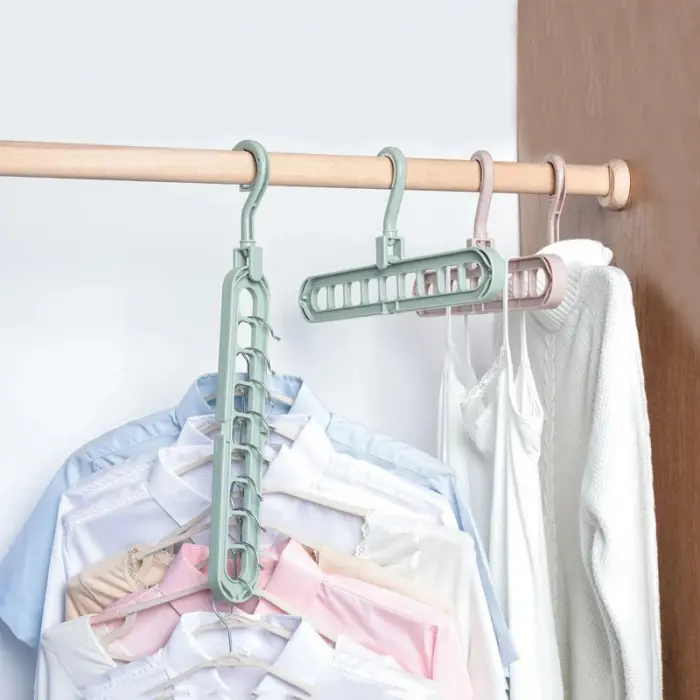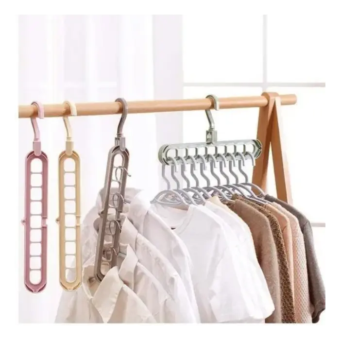 ¿Cansado del desorden en tu armario? Transformá tu vestidor con nuestras Perchas Mágicas de Alta Resistencia. 💪 Gracias a su diseño inteligente, cada unidad te permite ahorrar más del 80% de espacio, permitiéndote colgar hasta 9 prendas de forma vertical u horizontal.
